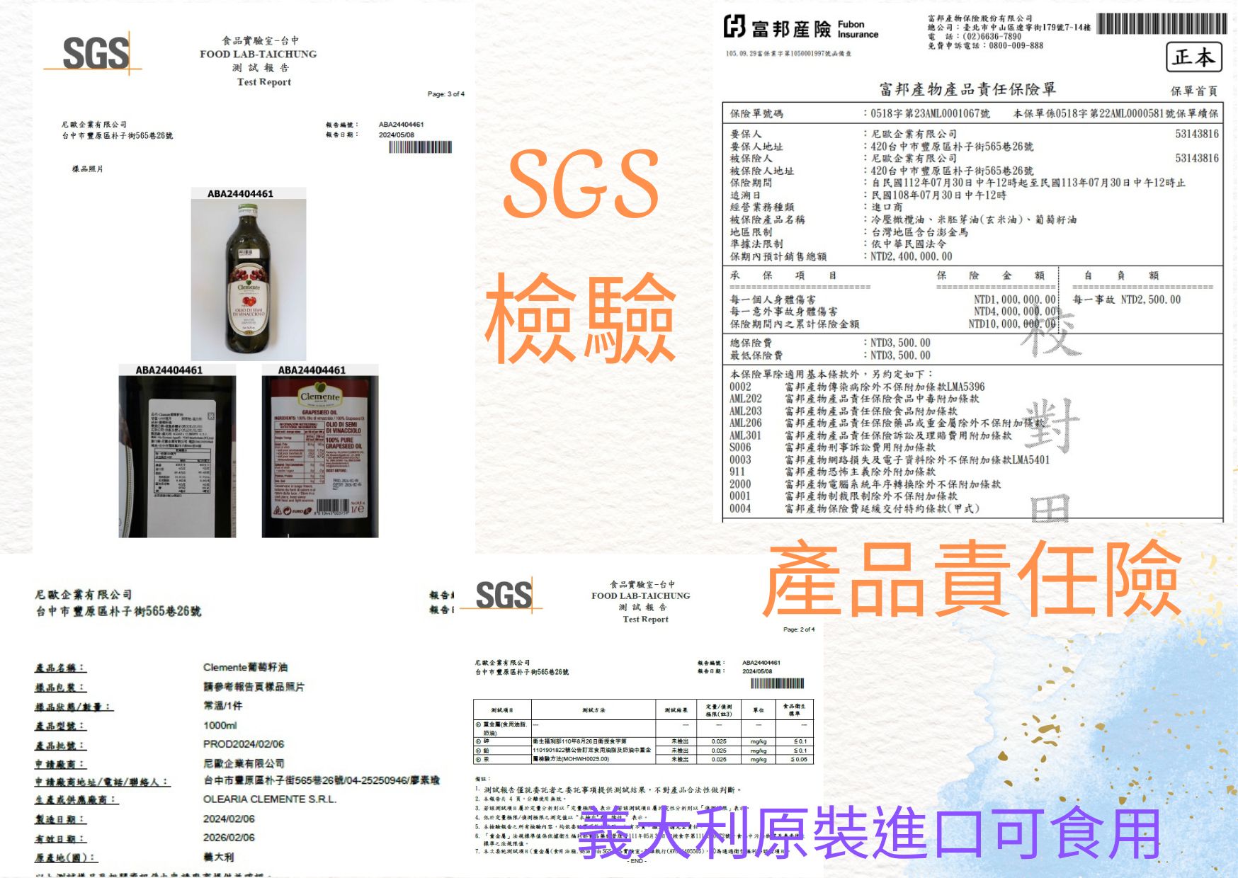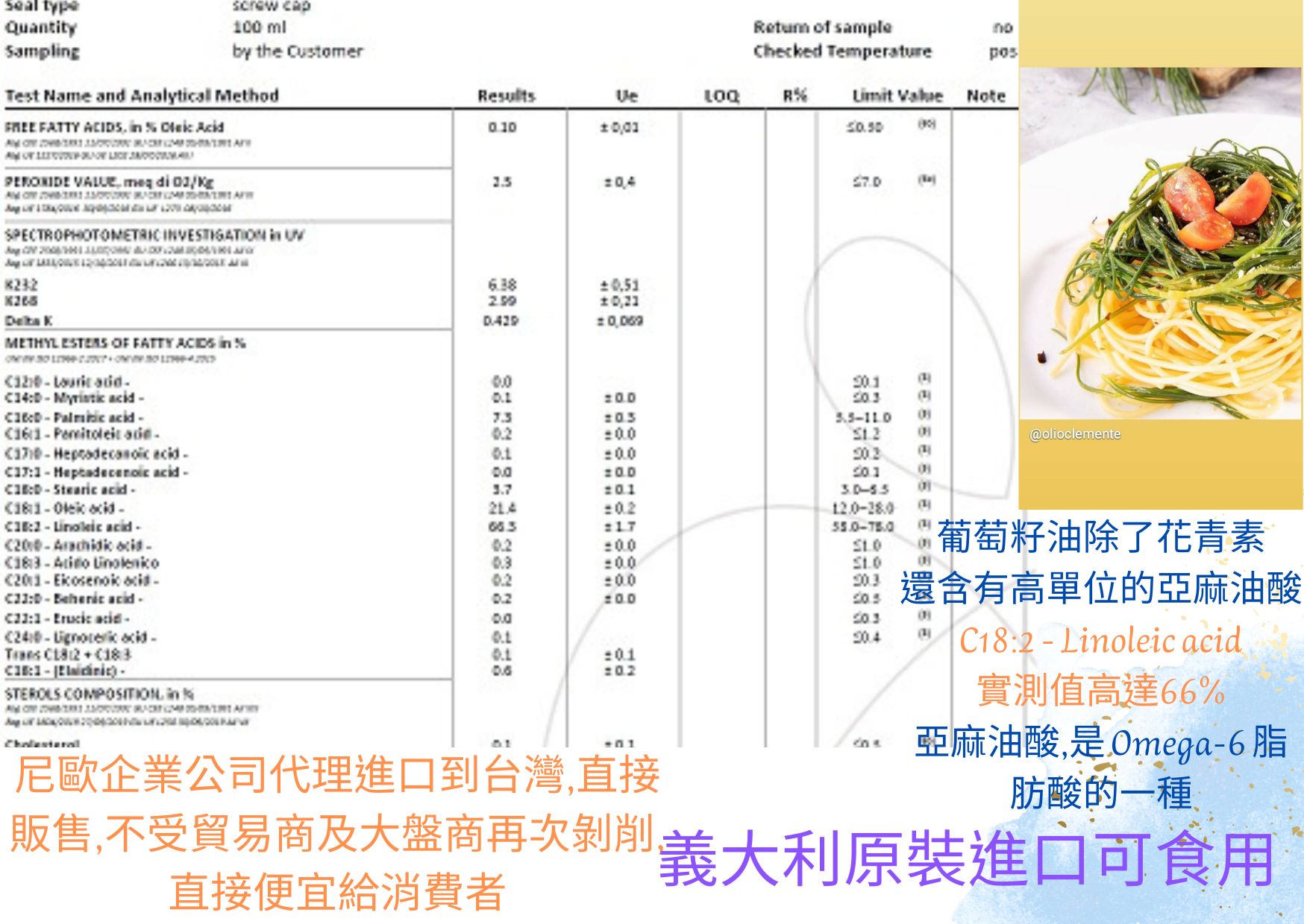 義大利原裝進口可食用 :CLEMENTE 葡萄籽油!